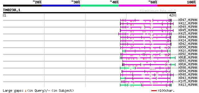 KRUA_HUMAN (P26371) Keratin, ultra high-sulfur matrix protein A ... 87 6e-17