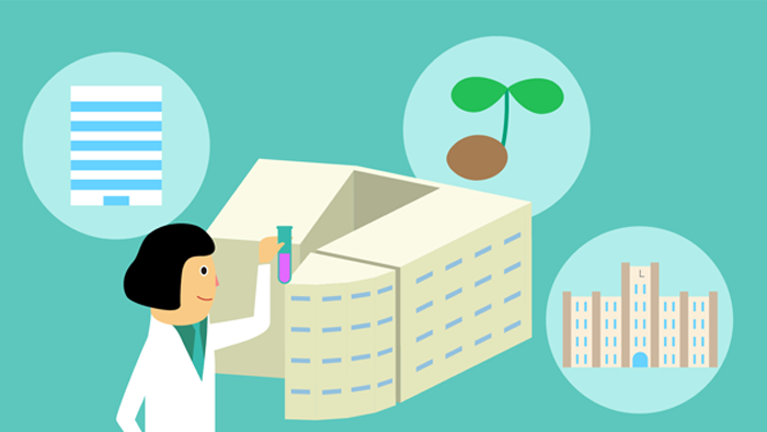 これまでの研究成果や作成したクローンなどの成果物、さらに研究過程で蓄積された技術的なノウハウ等を民間企業や公的機関と共同することによって、バイオ産業の発展を支援する新しい「エコシステム」を生み出すことができるのではないかと『バイオ産業技術支援センター』を設立し、研究成果における社会還元をより迅速・効率的に行える体制で『受託解析』を進めています。